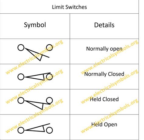 Web electrical symbols may be different for each manufacturer, but in most cases they are standard. Every manufacturer’s diagram should have a symbol identification. An electronic limit switch senses mechanical motion, but does so using light, magnetic fields, or other non.